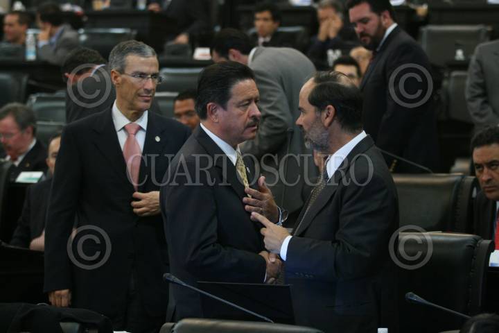 MÉXICO, D.F.,30OCTUBRE 2009.- Los senadores Jose Gonzalez Morfin y Gustavo Madero atentos a la votacion electronica, durante la sesión ordinaria en la que se pretende culminar el debate del paquete fiscal a un día que concluya el plazo legal para este procedimiento. FOTO: SÁSHENKA GUTIÉRREZ/CUARTOSCURO.COM
