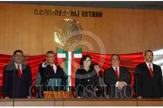 COLIMA, COLIMA, 01NOVIEMBRE2009.- Silverio Cabazos Ceballos, ex gobernador del estado, durante la toma de protesta de Mariano Aguiano (centro), nuevo gobernador de Colima. Al evento acudió el Secretario de Gobernación, Fernando Gómez-Mont. FOTO: CUARTOSCURO.COM