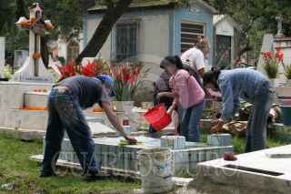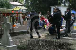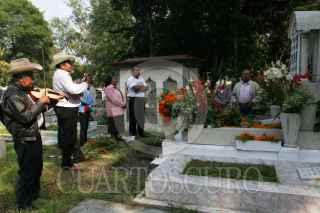 MÉXICO D.F., 01NOVIEMBRE2009.- Cientos de familias acudieron a los panteones para visitar las tumbas de sus seres queridos a los que les llevaron flores, música y objetos que en vida fueron preciados. FOTO: ENRIQUE ORDÓÑEZ/CUARTOSCURO.COM