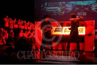 GUANAJUATO, GUANAJUATO, 02NOVIEMBRE2009.- La explanada de la Alhóndiga de granaditas vibró con el sonído de Nortec, ahora Tijuana Sound Machine quién compartió el escenario con la Internacional Banda de Música del Estado de Zacatecas, en la clausura del XXXVII Festival Internacional Cervantino. FOTO: DAVID BOLAÑOS/CUARTOSCURO.COM