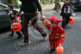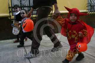 MÉXICO, D.F., 02NOVIEMBRE2009.- Cientos de niños salen a las calles para pedir su "calaverita", es te día 2 de noviembre (Día de Mueros). Acompañados de sus padres tocan las puertas de los hogares capitalinos, para pedir dulces, frutas, dinero y cientos de cosas que los lugareños deseen donar. FOTO: MISAEL VALTIERRA/CUARTOSCURO.COM