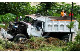 MÉXICO, D.F., 02NOVIEMBRE2009.- Un camión de carga cayó a un barranco después de perder el control de la pesada unidad en las calles Olmo y Tejocotes de la colonia Garcimerraro perímetro de la Delegación Álvaro Obregón. Sin que se registraran personas lesionadas. FOTO: LUIS CARBAYO/CUARTOSCURO.COM
