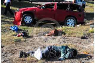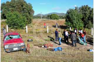 MÉXICO, D.F., 02NOVIEMBRE2009.- Un joven de 13 años y un adulto de 35 perdieron la vida al volcar la camioneta Chevrolet color roja donde viajaban con dirección a Pachuca. Al lugar arribaron elementos de la Procuraduria del Estado de Hidalgo para el levantamiento de los cuerpos y trasladarlos al forense en el Municipio de Tizayuca. FOTO: LUIS CARBAYO/CUARTOSCURO.COM