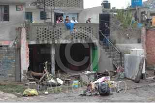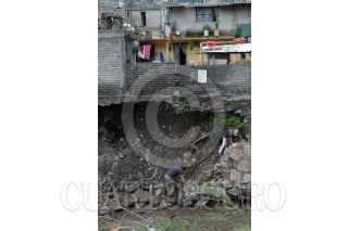 ECATEPEC, ESTADO DE MÉXICO 02NOVIEMBRE2009.- Vecinos de las comunidades Los Bordos, La Esperanza, Hank González y de San Andrés de la Cañada, temen perder sus casas por la corriente de agua de la barranca, que bajó por la fuerte lluvia que azotó el valle de México, desapareció sus calles y cimientos. FOTO: MARIO NULO/CUARTOSCURO.COM