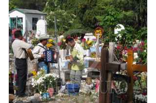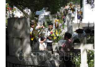 CHILPANCINGO, GUERRERO 02NOVIEMBRE2009.- En una tradicion milenaria cientos de personas acudieron a los panteones de la capital del estado, para recordar a sus seres queridos, donde visitaron sus tumbas, las cuales lavaron, limpiaron, pintaron y adornaron con flores, ademas de llevarles musica y comida que en vida les gustaba como parte de la celebracion del Dia de Muertos o Fieles Difuntos. FOTO: OSCAR ALVARADO/CUARTOSCURO.COM