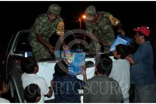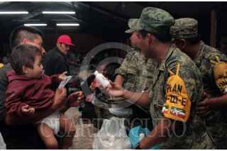 CÁRDENAS, TABASCO, 03NOVIEMBRE2009.- Debido a las inundaciones por las intensas lluvias, el Ejercito Mexicano desde anoche realiza labores de rescate y apoyo al aplicar el Plan DN-III en los albergues temporales, donde hay cientos de damnificados por los desbordes del río Blasillo. De la misma manera se le unen personal de la Cruz Roja para prestar los primero auxilios. FOTO: MARCO POLO GUZMÁN HERNÁNDEZ/CUARTOSCURO.COM