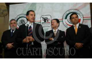 MÉXICO, D.F., 03NOVIEMBRE2009.- Jesús Ortega, líder nacional del PRD (Centro), encabezó una conferencia de prensa, acompañado por los coordinadores parlamentarios Alejandro Encinas y Carlos Navarrete, en la sede del Senado de la República. FOTO: CUARTOSCURO.COM