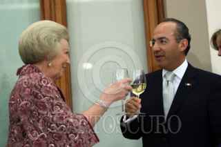 MÉXICO, D.F., 03NOVIEMBRE2009.- Felipe Calderón Hinojosa recibió a la reina Beatrix de los Países Bajos, en una cena en su honor en el Alcazar del Castillo de Chapultepec. FOTO: ALFREDO GUERRERO/CUARTOSCURO.COM