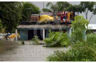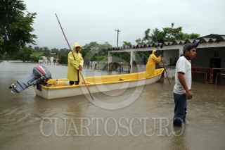 CÁRDENAS, TABASCO, 04NOVIEMBRE2009.- Habitantes de las rancherías, El Golpe, El Mingo, Tío Moncho y ejido Julian Montejo, se encuentran incomunicados vía terrestre. Ahí el nivel del desborde del río rebasa los cuatro metros y en varias partes tan solo se alcanzan a ver el techo de las casas. FOTO: MARCO POLO GUZMÁN HERNÁNDEZ/CUARTOSCURO.COM