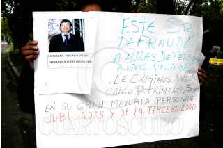 MÉXICO, D.F., 04NOVIEMBRE2009.- Personas de distintos estados de la República. Se manifestaron a las afueras de la Residencia oficial de Los Pinos exigiendo se les apoye en la detención de Leonardo Tiro Moranchel quien ha defraudado a cientos de personas a través de cajas de ahorro popular del Grupo SITMA. FOTO: LUIS CARBAYO/CUARTOSCURO.COM