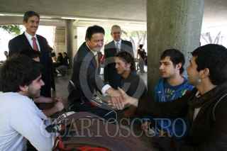 MONTERREY, NUEVO LEON, 04NOVIEMBRE2009.- Carlos Navarrete Ruiz, presidente del Senado de la República, saluda de mano a estudiantes del Instituto Tecnológico de Estudios Superiores de Monterrey durante la conferencia "Los Retos del Congreso y la Izquierda Mexicana" ante directivos, maestros y alumnos de esta Institución. FOTO: CUARTOSCURO.COM