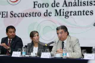 MÉXICO, D.F., 04NOVIEMBRE2009.- La senadora Ludivina Menchaca Castellanos junto a el senador Felipe González González, Presidente de la Comisión de Seguridad Pública del Senado de la República en la participación en el Foro de Análisis "El Secuestro de Migrantes en México". FOTO: CUARTOSCURO.COM