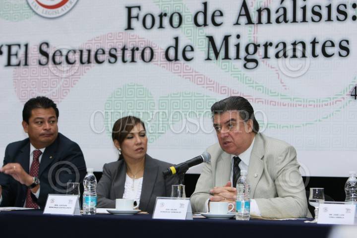 MÉXICO, D.F., 04NOVIEMBRE2009.- La senadora Ludivina Menchaca Castellanos junto a el senador Felipe González González, Presidente de la Comisión de Seguridad Pública del Senado de la República en la participación en el Foro de Análisis "El Secuestro de Migrantes en México". FOTO: CUARTOSCURO.COM