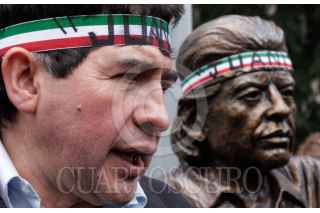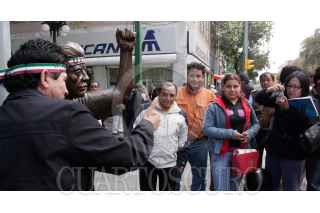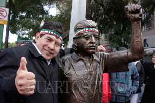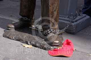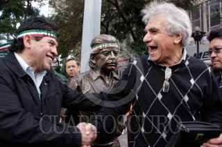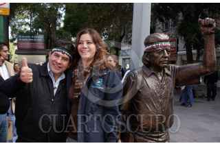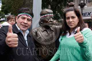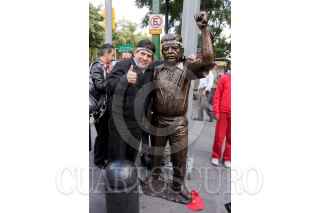 MÉXICO, D.F., 05NOVIEMBRE2009.- Rafael Acosta "Juanito", delegado con licencia en Iztapalapa colocó una estatua de su figura en el cruce de Balderas y Juarez. Esta estatua se encuentra encadenada a un poste para evitar que se la roben, además estará en diversos puntos de la ciudad hasta el 25 de noviembre. FOTO: ESSENE HERNÁNDEZ/CUARTOSCURO.COM
