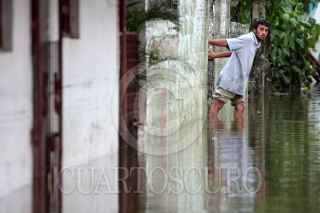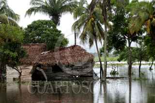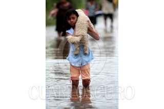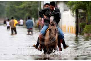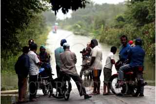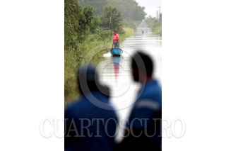 CÁRDENAS, TABASCO, 06NOVIEMBRE2009.- Varios pobladores esperan un cayuco para poder trasladarse de un extremo al otro, ya que es la única manera de atravesar el tramo carretero que esta incomunicado por el desborde de los rÌos que causan las fuertes lluvias. FOTO: MARCO POLO GUZMÁN HERNÁNDEZ/CUARTOSCURO.COM