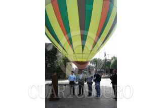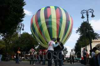 MÉXICO, D.F., 07NOVIEMBRE2009.- Esta mañana la secretaria de turismo del Distrito Federal encabezada por su secretario Alejandro Rojas Duran acudió a la exhibición del globo aerostático promocional de la Ciudad de México, donde decenas de personas se dieron cita en el jardín Hidalgo de la delegación Coyoacan. FOTO: SÁSHENKA GUTIÉRREZ/CUARTOSCURO.COM
