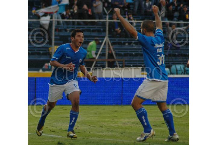 MÉXICO, D.F., 07NOVIEMBRE2009.- Pablo Daniel Zeballos, de la maquina celeste del Cruz Azul festeja su anotación durante el encuentro en contra del Puebla de la franja en la Jornada 16 del torneo Apertura 2009, ganando el Cruz Azul 4 goles a 0. FOTO: RODOLFO ANGULO/CUARTOSCURO.COM