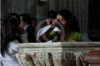 MÉXICO, D.F., 08NOVIEMBRE2009.- Una niña se pone en la frente agua bendita, después de la misa dominical en la Catedral Metropolitana. FOTO: ESSENE HERNÁNDEZ/CUARTOSCURO.COM