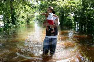 HUIMANGUILLO, TABASCO, 08NOVIEMBRE2009.- Continuan alarmantemente los desborde del río Tonala en esta zona de la Chontalpa lo que esta provocando que las inundaciones aumenten en nuevas comunidades que en días pasadas no tenian peligro. En estos lugares se ven afectadas centro escolares, y demás viviendas donde las aguas son profundas a más de tres metros de profundidad. FOTO: MARCO POLO GUZMÁN HERNÁNDEZ/CUARTOSCURO.COM