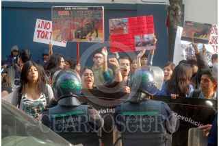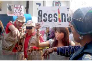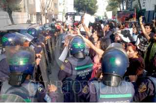 MÉXICO, D.F., 08NOVIEMBRE2009.- Integrantes de Green Peace se manifestaron en las afueras de la Plaza de toros en protesta por la forma en que se tortura a los animales en cada corrida. Por lo que fue necesaria la presencia del grupo de granaderos de la Secretaria de Seguridad Publica. FOTO: LUIS CARBAYO/CUARTOSCURO.COM