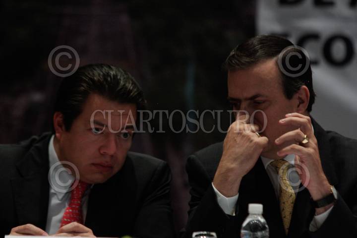 MÉXICO, D.F., 09NOVIEMBRE2009.- Marcelo Ebrard Casaubón, jefe de gobierno del D.F., Alejandra Barrales Magdaleno, presidente de la Comisión de Gobierno, Jose Angel Avila, subsecretario de gobierno y Mariana Gómez del Campo, diputada local del PAN en D.F. durante la presentación de iniciativas económicas del gobierno capitalino a asambleístas del D.F., en un hotel de la ciudad. FOTO: ESSENE HERNÁNDEZ/CUARTOSCURO.COM