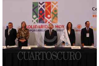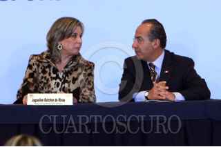 MÉXICO, D.F., 10NOVIEMBRE2009.- Jaqueline Butcher de Rivas y Felipe Calderón, Presidente de México, durante la inauguración de la Reunión Anual 2009 del Centro Mexicano para la Filantropia Solidaridad Hoy: Responsabilidad de Todos. FOTO: FRANCISCO SANTOS /CUARTOSCURO.COM