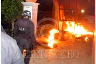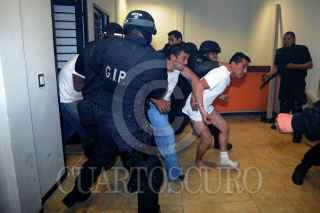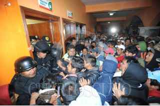JUCHITEPEC, ESTADO DE MÉXICO, 10NOVIEMBRE2009.- Elementos de la policía estatal liberan a los cuatro sujetos que estuvieron a punto de ser linchados por pobladores de San Matias Cuijingo, los presuntos delincuentes fueron acusados de secuestrar a uno de los pobladores, tras una larga negociación en el cual no hubo acuerdos los miembros del ASE montaron un operativo para rescatarlos. FOTO: LUIS CARBAYO/CUARTOSCURO.COM