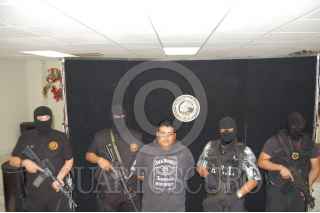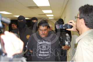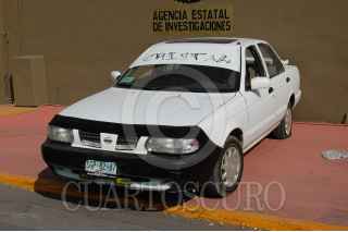 GARCÍA, NUEVO LEÓN, 11NOVIEMBRE2009.- La Agencia Estatal de Investigaciones presentó la tarde del domingo, a un taxista pirata acusado de ser uno de los autores materiales de la ejecución del General de Brigada Juan Arturo Esparza García, quien fuera emboscado junto a sus escoltas por un comando en el municipio de García, Nuevo León. Miguel Ángel Rivera, director interino de la Agencia informó en rueda de prensa, que la detención de Ramíro Fernández de Luna, alias “La Chivis” fue producto de las investigaciones, que continuan a su mando en coordinación con la IV Región Militar. El jefe policíaco, dijo que “La Chivis” junto a su padre, Juan Manuel Fernández, se dedicaban, a conducir taxis de los llamados piratas, ya que operan sin permiso legal y que sirven de espías o “halcones” para grupos delictivos que operan en ese municipio de García, Nuevo León. Al detenido, se le decomiso un automóvil Nissan Tsuru, con placas SGP-8287 del servicio particular. Ninguna arma de fuego. FOTO: LOSTUBOS.COM