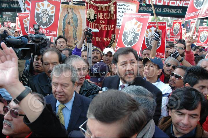 MÉXICO, D.F., 11NOVIEMBRE2009.- Miembros del Sindicato de Telefonistas realizaron un mitin en apoyo al Sindicato Mexicano de Electricistas (SME) a las afueras de las instalaciones de Teléfonos de México por motivo del paro cívico nacional en apoyo al SME. FOTO: RODOLFO ANGULO/CUARTOSCURO.COM