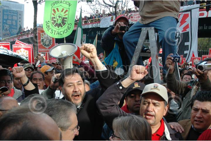 MÉXICO, D.F., 11NOVIEMBRE2009.- Miembros del Sindicato de Telefonistas realizaron un mitin en apoyo al Sindicato Mexicano de Electricistas (SME) a las afueras de las instalaciones de Teléfonos de México por motivo del paro cívico nacional en apoyo al SME. FOTO: RODOLFO ANGULO/CUARTOSCURO.COM