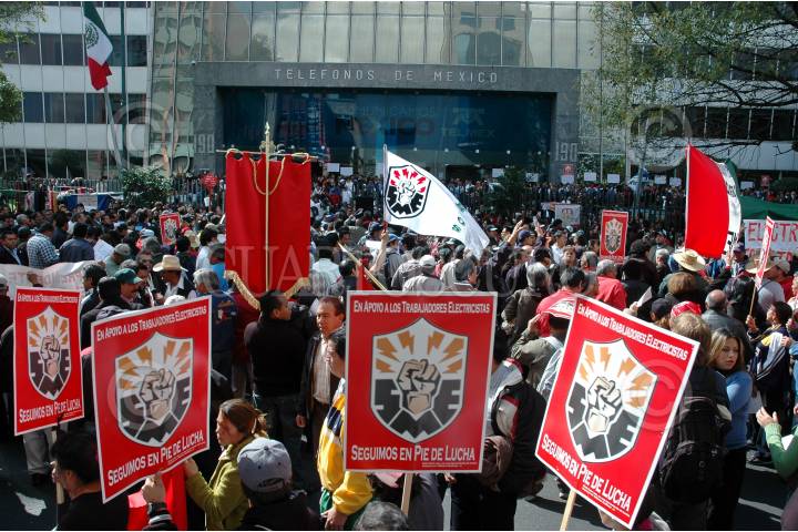 MÉXICO, D.F., 11NOVIEMBRE2009.- Miembros del Sindicato de Telefonistas realizaron un mitin en apoyo al Sindicato Mexicano de Electricistas (SME) a las afueras de las instalaciones de Teléfonos de México por motivo del paro cívico nacional en apoyo al SME. FOTO: RODOLFO ANGULO/CUARTOSCURO.COM