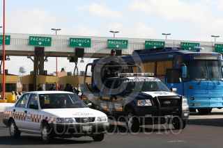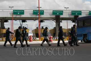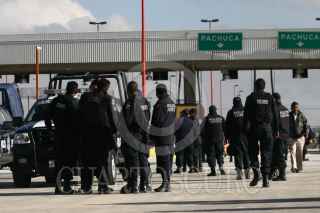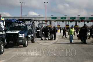 ECATEPEC, EDO. DE MÉX. 11NOVIEMBRE2009.- Elementos de la Policía Federal, resguardan la instalaciones de la caseta de cobro de Ojo de Agua, esto por la posible toma de las instalaciones por integrantes del Sindicato Mexicano de Electricistas (SME) dicha caseta hace entronque con la carretera México Pachuca. FOTO: GUILLERMO PEREA /CUARTOSCURO.COM