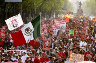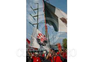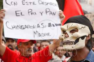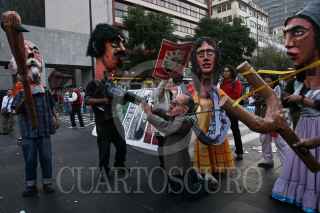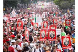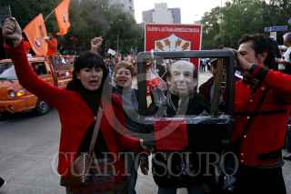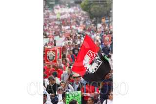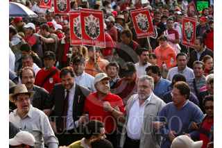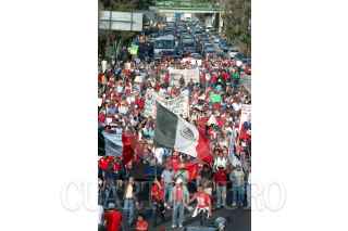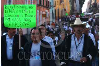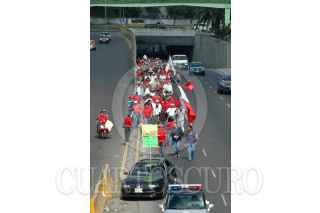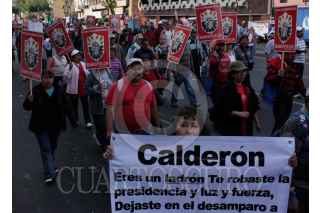 PUEBLA, PUEBLA, 11NOVIEMBRE2009.- Trabajadores de Teléfonos de México y otros sindicatos se unieron al del SME como parte del paro nacional convocado por los electricistas de luz y fuerza del centro. FOTO: FRANCO/CUARTOSCURO.COM