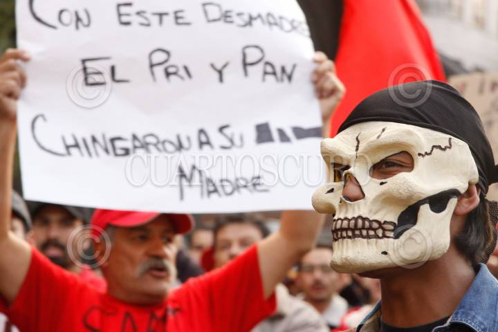PUEBLA, PUEBLA, 11NOVIEMBRE2009.- Trabajadores de Teléfonos de México y otros sindicatos se unieron al del SME como parte del paro nacional convocado por los electricistas de luz y fuerza del centro. FOTO: FRANCO/CUARTOSCURO.COM