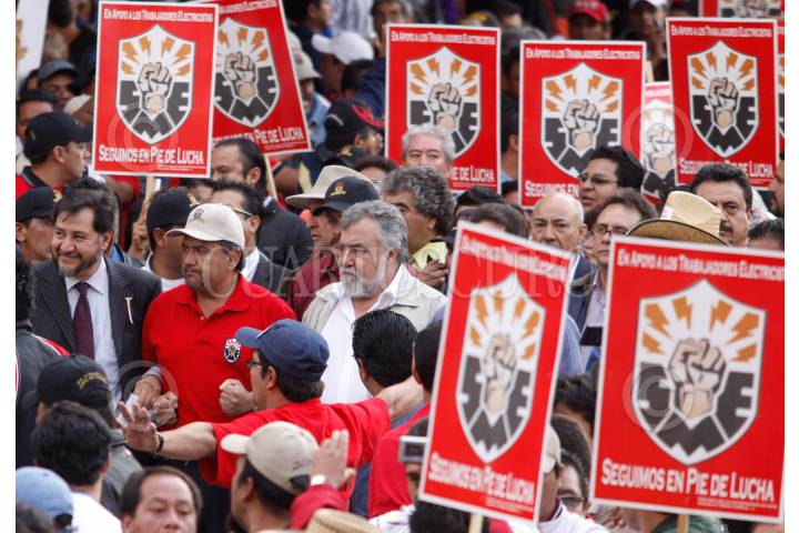 PUEBLA, PUEBLA, 11NOVIEMBRE2009.- Trabajadores de Teléfonos de México y otros sindicatos se unieron al del SME como parte del paro nacional convocado por los electricistas de luz y fuerza del centro. FOTO: FRANCO/CUARTOSCURO.COM