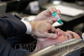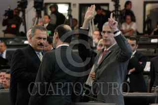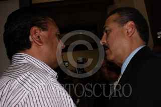 MÉXICO, D.F., 12NOVIEMBRE2009.- Martín Esparza Flores, lider de los Electricistas saluda a Manlio Fabio Beltrones senador del PRI durante su llegada al Senado. FOTO: ESSENE HERNÁNDEZ/CUARTOSCURO.COM