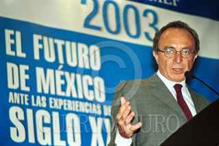 Guillermo Ortíz Martinez, Presidente del Banco de México, Javier Márquez Diez Canado, vicepresidente de Desarrollo profecional, a su llegada al Centro de Exposiciones Banamex para dar início a la inaguración del Simposium IMEF 2003. FOTO: Sandra Perdomo/CUARTOSCURO.COM
