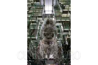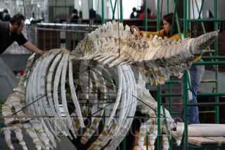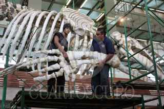 MÉXICO, D.F., 13NOVIEMBRE2009.- La escultura osea de la ballena gris " Matrix Movil", del artista plástico, Gabriel Orozco que reside en la Biblioteca Vasconcelos viajará al Museum of Modern Art (Moma) para formar parte de la exposición retrospectiva que se presentará en Nueva York Estados Unidos, el 8 de diciembre próximo. FOTO: ESSENE HERNÁNDEZ/CUARTOSCURO.COM