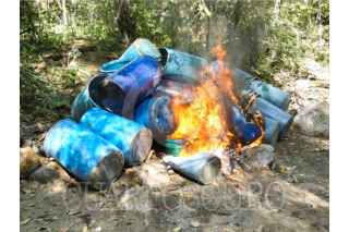 CULIACÁN, SINALOA, 13NOVIEMBRE2009.- La Secretaría de la Defensa Nacional informó que en el marco de la Campaña Permanente contra el Narcotráfico y la aplicación de la Ley Federal de Armas de Fuego y Explosivos, el día 11 de noviembre de 2009, personal militar perteneciente al 94/o. Batallón de Infantería, al atender una denuncia ciudadana referente a actividades ilícitas, realizó reconocimientos terrestres a inmediaciones del poblado Lo de Duarte, sindicatura de Sanalona, habiendo localizado un laboratorio clandestino para el procesamiento y elaboración de droga sintética, donde se almacenaba, una tonelada 718 kilogramos de cristal granulado. Asimismo el laboratorio se encontraba dentro de un predio de cinco hectáreas y la droga asegurada habría tenido un valor en el mercado negro de 687 millones 340 mil pesos. FOTO: SEDENA/CUARTOSCURO.COM