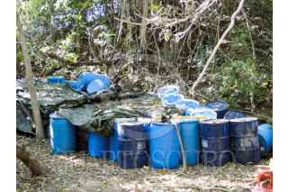 CULIACÁN, SINALOA, 13NOVIEMBRE2009.- La Secretaría de la Defensa Nacional informó que en el marco de la Campaña Permanente contra el Narcotráfico y la aplicación de la Ley Federal de Armas de Fuego y Explosivos, el día 11 de noviembre de 2009, personal militar perteneciente al 94/o. Batallón de Infantería, al atender una denuncia ciudadana referente a actividades ilícitas, realizó reconocimientos terrestres a inmediaciones del poblado Lo de Duarte, sindicatura de Sanalona, habiendo localizado un laboratorio clandestino para el procesamiento y elaboración de droga sintética, donde se almacenaba, una tonelada 718 kilogramos de cristal granulado. Asimismo el laboratorio se encontraba dentro de un predio de cinco hectáreas y la droga asegurada habría tenido un valor en el mercado negro de 687 millones 340 mil pesos. FOTO: SEDENA/CUARTOSCURO.COM