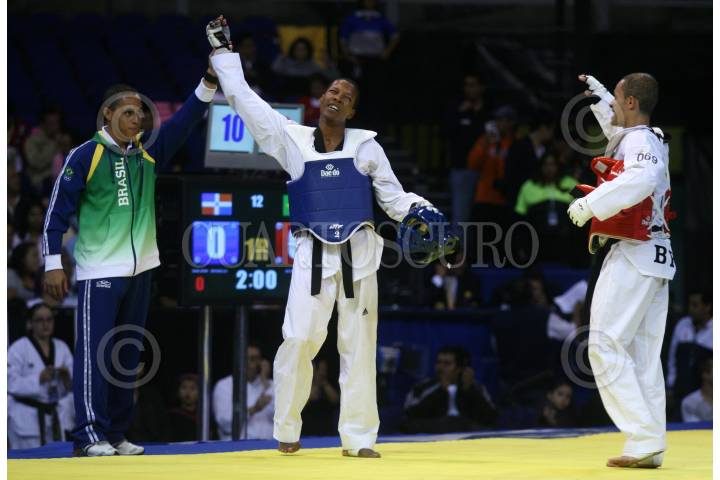 MÉXICO, D.F., 14NOVIEMBRE2009.- Gabriel Mercedes de Republica Dominicana celebra su victoria durante la final del encuentro de la liga mundial de Taekwondo celebrada en el Palacio de los Deportes. FOTO: SÁSHENKA GUTIÉRREZ/CUARTOSCURO.COM