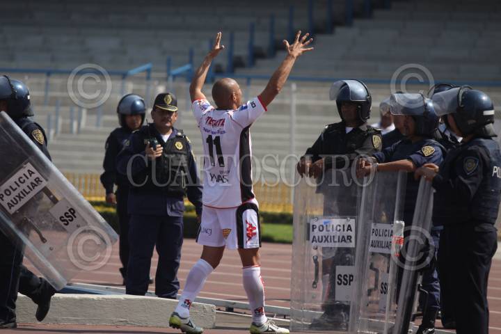 MÉXICO, D.F., 15NOVIEMBRE2009.- Héctor Giménez autor del gol de los Indios de Ciudad Juárez celebra su anotación de gol, durante el encuentro con los Pumas de la UNAM donde se despidieron del torneo Apertura 2009 con un empate 1-1 ante Indios de Ciudad Juárez FOTO: SÁSHENKA GUTIÉRREZ/CUARTOSCURO.COM