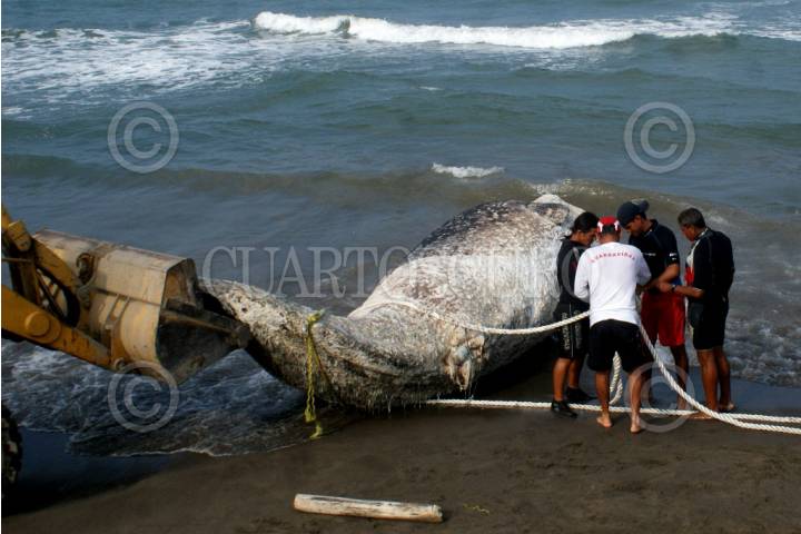 VERACRUZ, VERACRUZ, 15NOVIEMBRE2009.- Una embarcación de la marina remolco hasta las playa de Veracruz a una ballena de diez metros de largo que murió en el Golfo de México y fue vista por pescadores de la región quienes dieron aviso a las autoridades. FOTO: FELIX MARQUEZ/CUARTOSCURO.COM