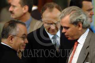Marco Antonio Peyrot, secretario de marina, Alejandro Gertz, secretario de seguridad pública y José Villa del Castillo, representante regional para México y Centro América de la oficina de la ONU contra las drogas al ternimo de la ceremonía del día internacional de la lucha contra el uso indebido y el tráfico ilícito de drogas. FOTO: Nelly Salas/CUARTOSCURO.COM