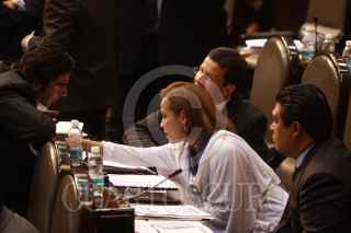 MÉXICO, D.F., 16NOVIEMBRE2009.- Josefina Vázquez Mota conversa con el diputado Jorge Kahwag, durante la sesión en la Cámara de Diputados coordinador de diputados del PRI al reiniciarse la discusión del Presupuesto de Egresos de la Federación para el ejercicio fiscal 2010 FOTO: SÁSHENKA GUTIÉRREZ/CUARTOSCURO.COM