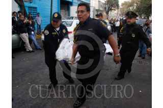 MÉXICO, D.F., 17NOVIEMBRE2009.- Encuentran a una persona ejecutada en el interior de su departamento en un condominio de la calle Melchor Ocampo en la colonia Magdalena Mixuca. Policías junto con peritos bajan el cuerpo desde el tercer piso donde se encontraba la victima. FOTO: SAÚL LÓPEZ/CUARTOSCURO.COM
