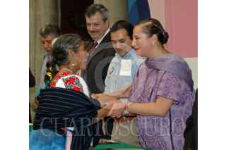 MÉXICO, D.F., 18NOVIEMBRE2009.- Rafaela Luft Davalos titular del Fondo Nacional para el Fomento de las Artesanias (FONART) durante la premiación del concurso nacional Gran Premio de Arte Popular y del sexto concurso nacional Grandes Obras Maestras Leyendas Vivientes que se realizo en el Museo de la Ciudad de México. FOTO: RODOLFO ANGULO/CUARTOSCURO.COM