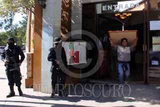 OAXACA, OAXACA, 18NOVIEMBRE2009.- Cuarenta y cinco trabajadores de un restaurante Vips, ubicado en el Paseo Juárez, El Llano, se quedaron sin empleo luego de que auditores de la Secretaría de Hacienda, con el apoyo de policías preventivos, embargaran el establecimiento por una deuda de 5 años. FOTOS: MAX NÚNEZ/ CUARTOSCURO.COM