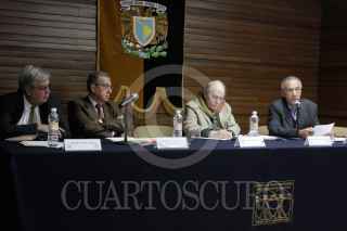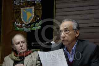 MEXICO, D.F.18NOVIEMBRE2009.- John Saxe- Fernandez y Fernando Martinez Heredia durante la inauguración del Seminario Internacional Impactos de la Revolución Cubana en América Latina Hoy, que se realizará los días 18 y 19 de Noviembre en la facultad de Humanidades de C.U. FOTO: ESSENE HERNÁNDEZ/CUARTOSCURO.COM