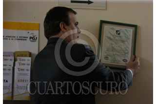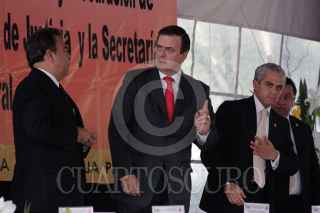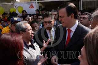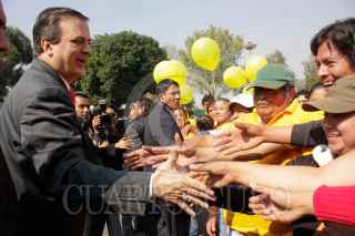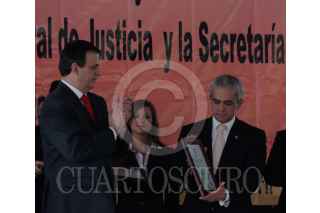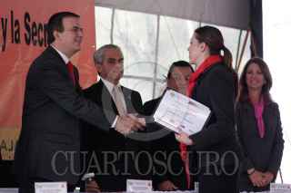 MEXICO, D.F., 19NOVIEMBRE2009.- Raymundo Collins director de la Central de Abastos, Ana Franco de Wattnem, Presidenta de México Unido Contra la Delincuencia y Marcelo Ebrard Casaubón, jefe de gobierno del D.F. durante la certificacion del ISO 9001 en las oficinas administrativas de la Central de Abastos. FOTO: ESSENE HERNÁNDEZ/CUARTOSCURO.COM